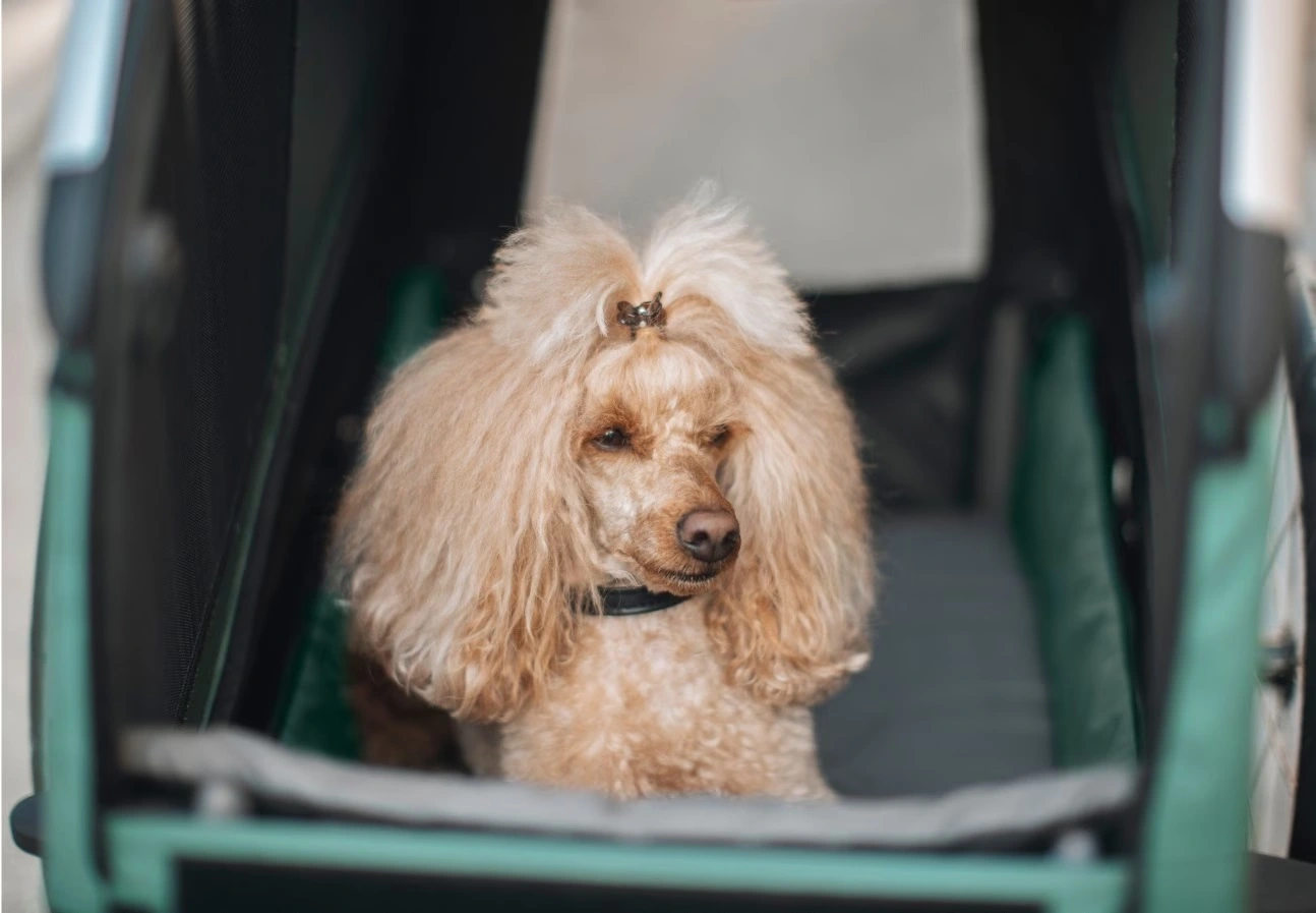 Thule Bexey bicycle trailer designed for the traveling comfort of your four-legged friend.