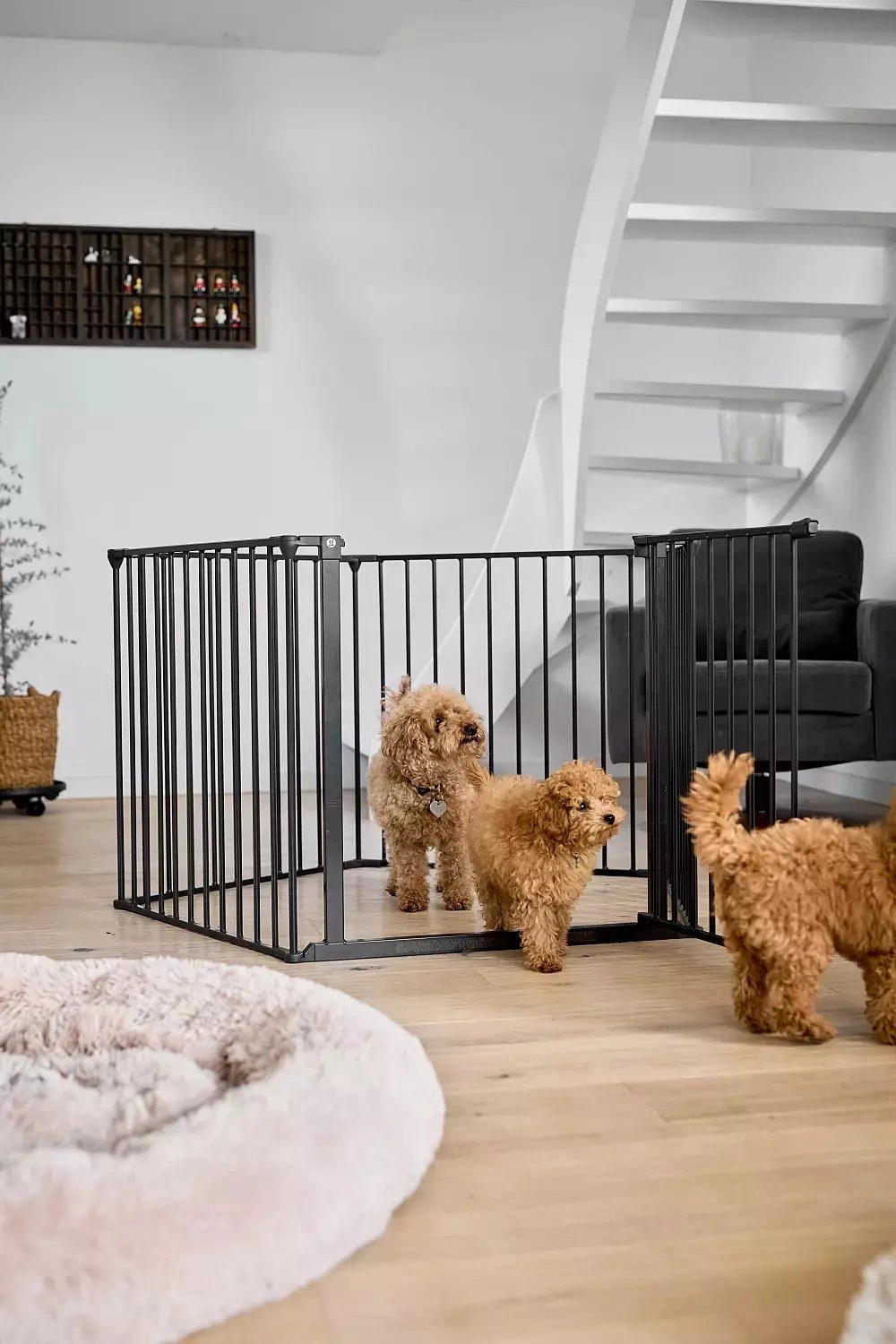 MaxMulti to produkt 2w1 - kiedy potrzebujesz stworzyć psu miejsce do zabawy i odpoczynku - zbuduj kojec, a kiedy potrzebujesz odgrodzić kominek lub wejście na taras - odgrodzisz je bramką, która pasuje do przejść o szerokości od 90 cm do aż 350 cm!